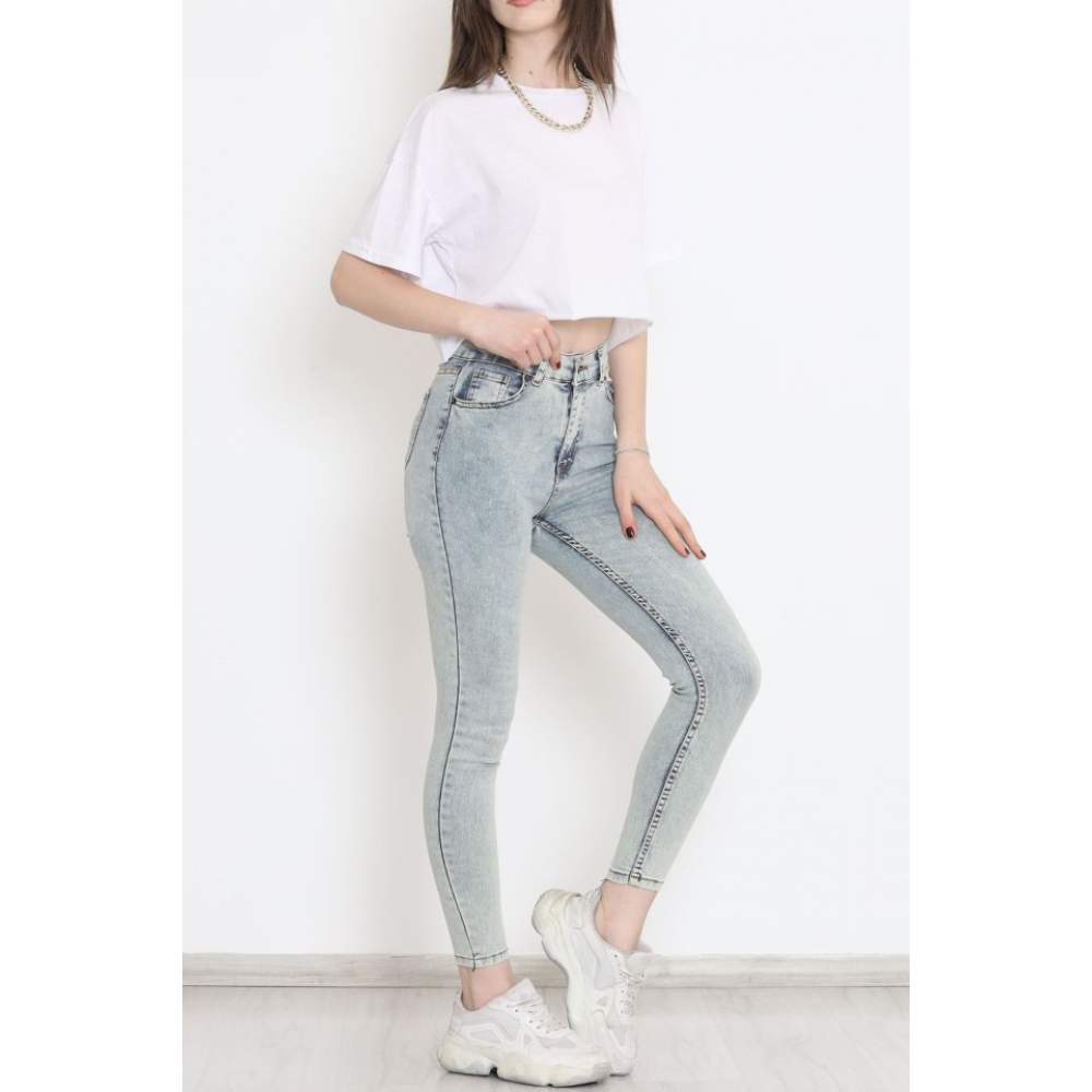 Kadın Cep Detay Kar Yıkamalı Kot Pantolon