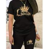 Kadın Kısa Kollu Queen Baskı Viskon Ikili Takım
