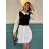 Kadın Uzun Kollu Gömlek Yaka çift Renkli Trikoton Elbise