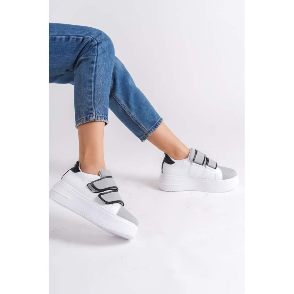Lisinya948  Bağcıksız Cırt Cırtlı Ortopedik Taban Kadın Sneaker Ayakkabı BT Beyaz/Gri