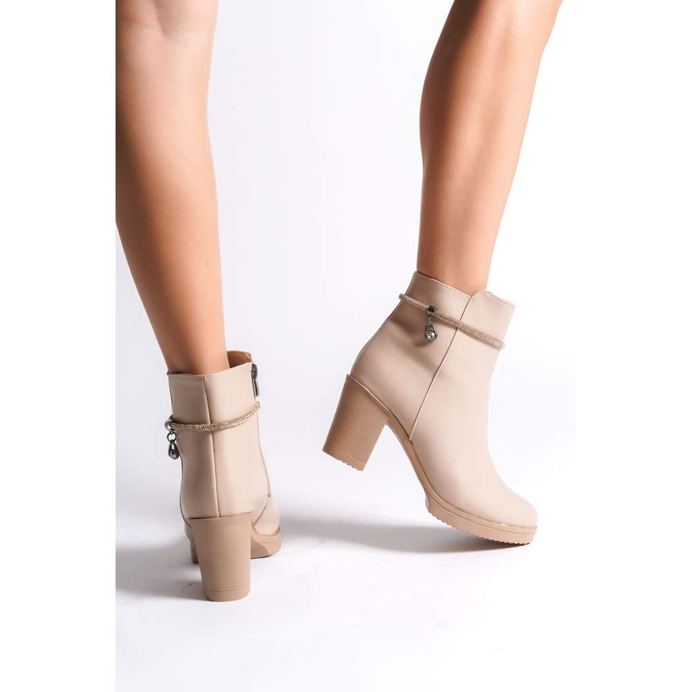 Lisinya948  Fermuarlı Ortopedik Taban Suya ve Soğuğa Dayanıklı Taşlı Topuklu Kadın Bot TT Ten